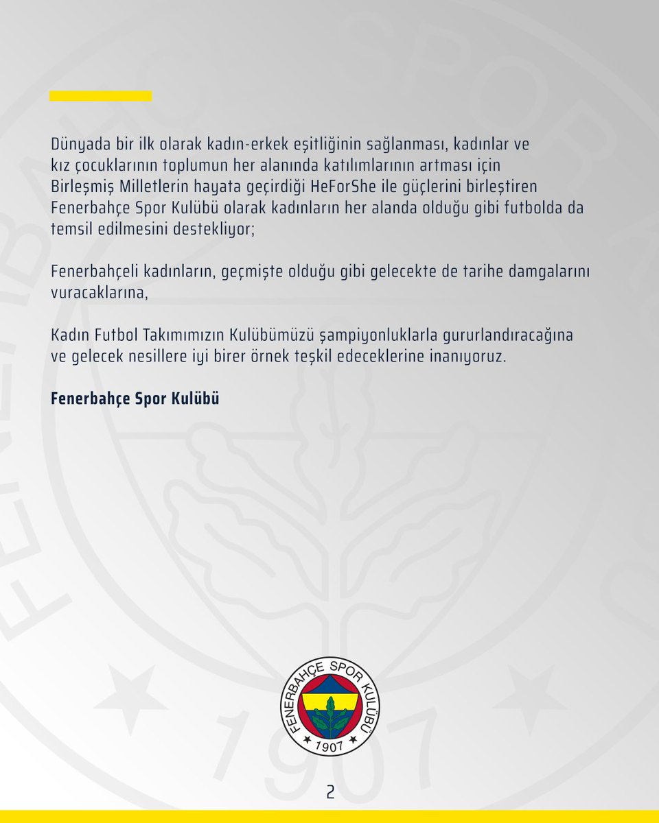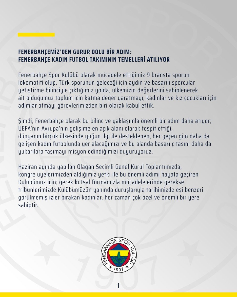 Fenerbahçeli kadınların, geçmişte olduğu gibi gelecekte de tarihe damgalarını vuracaklarına yürekten inanıyoruz. @kadinfutbolfb 💪 twitter.com/kadinfutbolfb/…