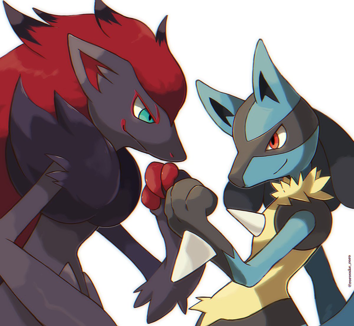 ライバルなゾロアークさんとルカリオさん。