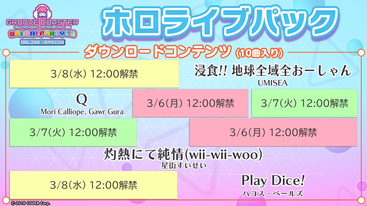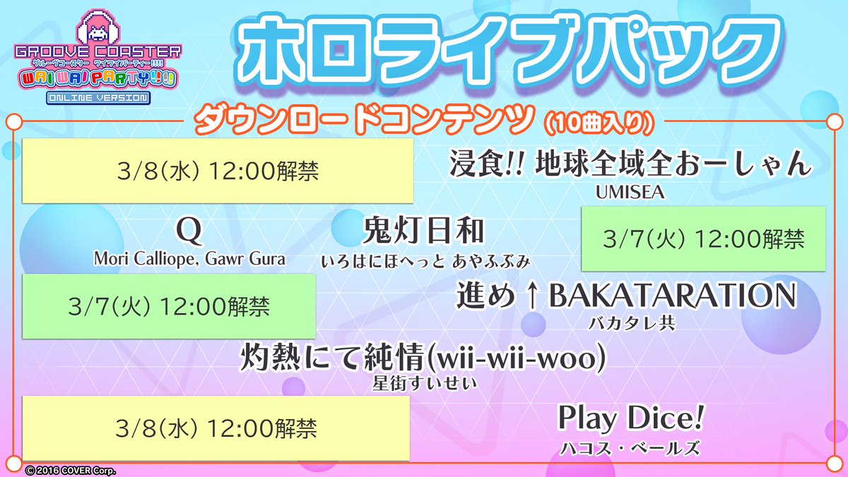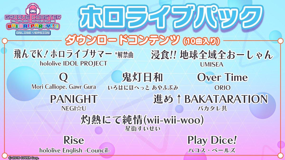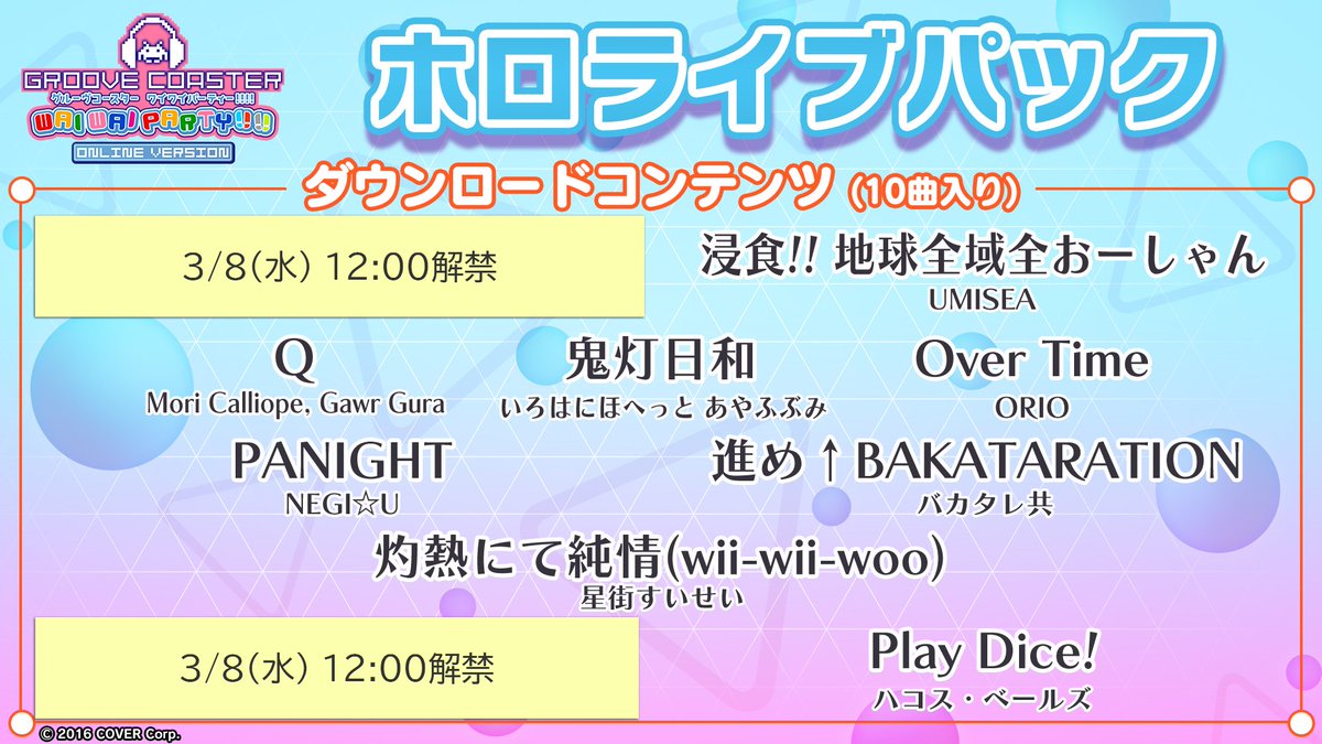 【特報】Nintendo Switch版『グルーヴコースター』のDLC「ホロライブ パック」が3/9(木)に発売決定🎶