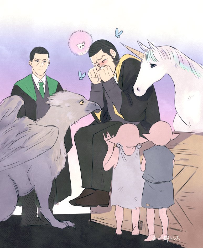 薩摩ホグワーツ派生でもなんでもないただの落書きだけど魔法生物たちに慰められるゲンジロちゃん