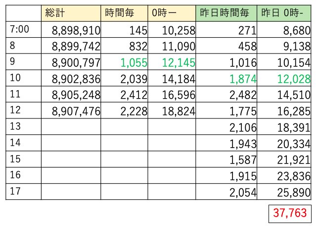 今週中に900万行きそうだな😊