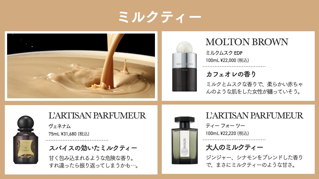 寒い季節こそ纏いたい”ミルク系香水”12選 赤ちゃん肌のような柔らかい香りから、シックでかっこいいカフェオレの香りまで。新しいニットやマフラーに合わせて、この冬は是非ミルク系香水に挑戦してみてください💁‍♀️