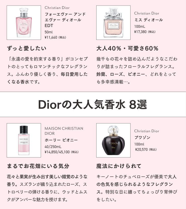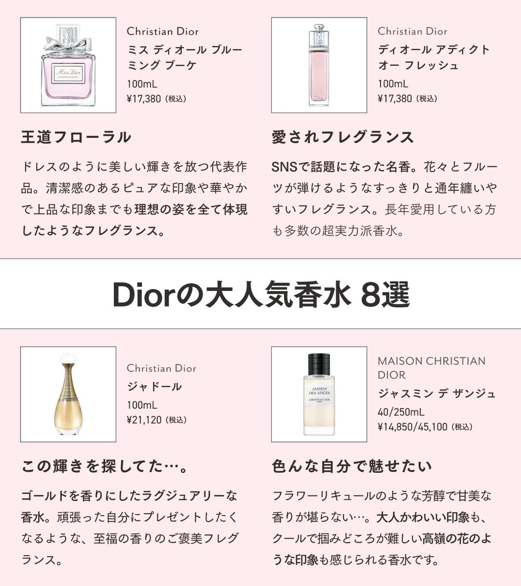 香水界の女帝、Diorの大人気香水を徹底解説!どれも良くて迷う…という方に、自信を持っておすすめしたいのがディオール アディクト オー フレッシュ。高級ホテルのお風呂上がりのような上品な清潔感は、この香水にしか出せない香り。クチコミ評価も高い名香のひとつです💁‍♀️