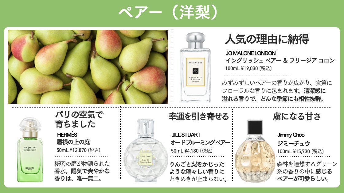 香水好きの友人から「え、めっちゃ好き」とお墨付きをもらった香水がエルメスの屋根の上の庭。洋梨の瑞々しく新鮮な果実の香りが最高で、洋梨香水で有名なジョーマローンのイングリッシュ ペアー&フリージアが好きな人はこれも絶対好きってなる... 次の香水を迷っている方にもおすすめな一本です💁‍♀️