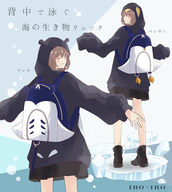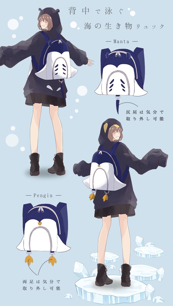 Favoriteオリジナル✨背中で泳ぐ海の生き物リュック🌊ペンギン、マンタ🐧男女兼用design🚹🚺