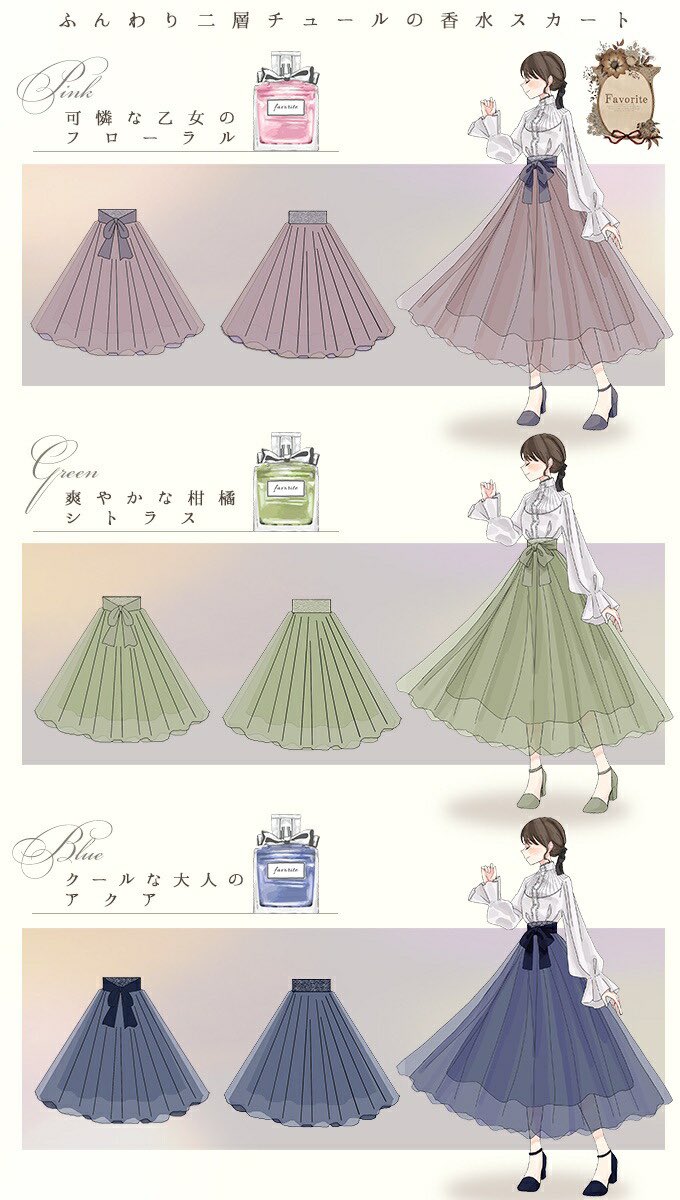 Favoriteオリジナル✨香水のワンピース👗シトラス、フローラル、アクア…💐チュールを2層重ねて、香水瓶をイメージさせました✨