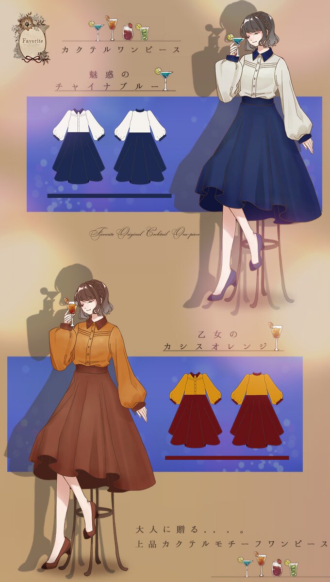 Favoriteオリジナル✨ カクテルのワンピース👗🍸🍷🍹M/LLの2サイズ✨favorite-one.co.jp/fvai213