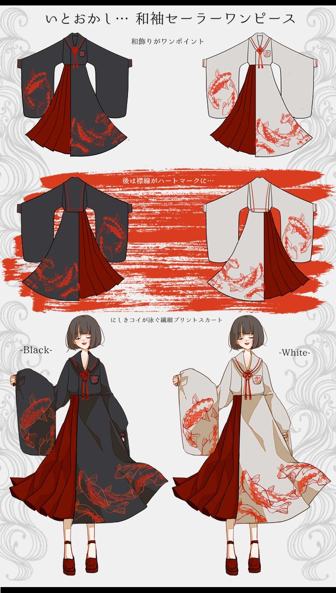 Favoriteオリジナル✨和洋折衷👘にしき恋❤️錦鯉プリントの和袖セーラーワンピース👗