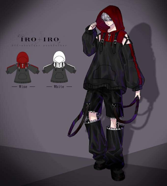 IRO+IRO🖤❤️ オフショル❌ZIPパンクロックコーデ🎸パーカー&パンツ⚡️男女兼用design🚹🚺