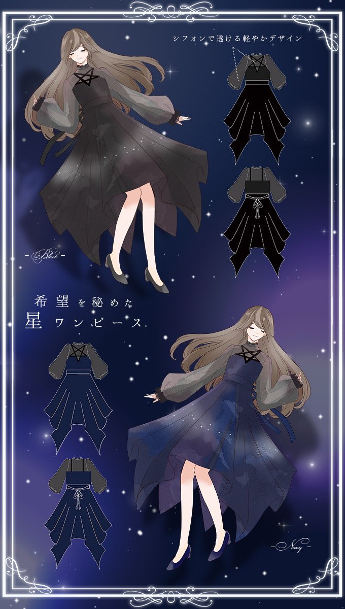 Favoriteオリジナル✨ デコルテと袖の透け感が儚い。希望の星を胸に秘めたドレープワンピース✨🌌👗
