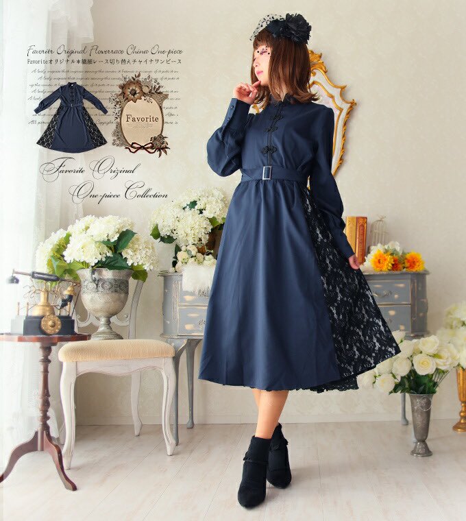 Favoriteオリジナル✨シックに大人可愛く♬レースとチャイナボタンのワンピース👗🇨🇳