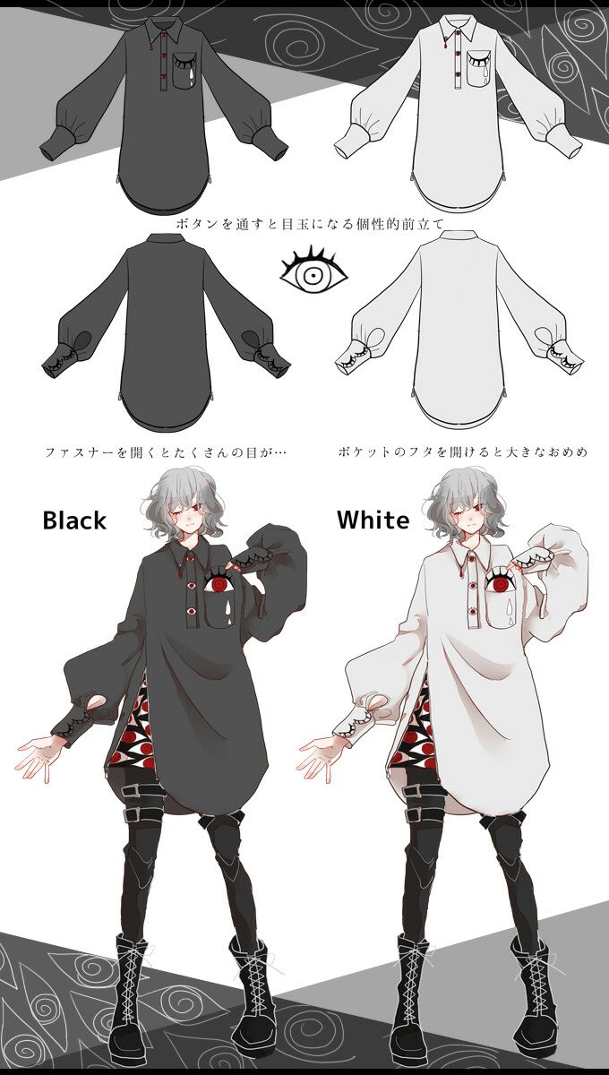 IRO+IRO🖤🤍目ポケット&ボタンのサイドファスナーおめめシャツ👁🗨👁男女兼用design🚹🚺