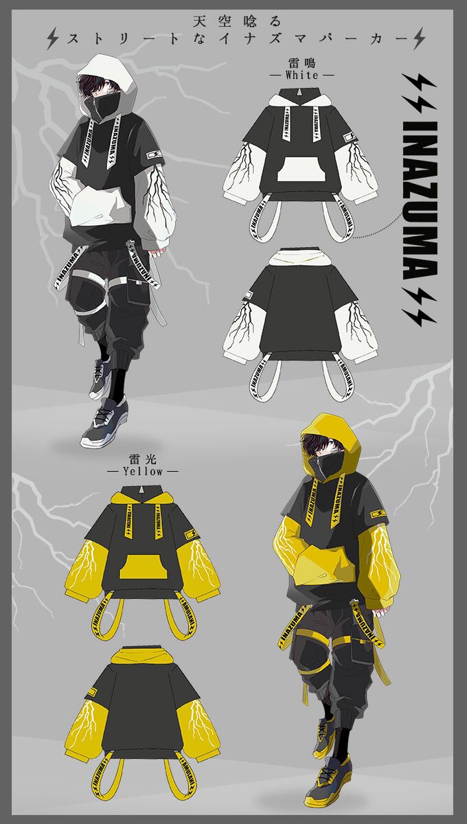 IRO+IRO🖤💛 ストリートイナズマパーカー⚡️⚡️⚡️⚡️⚡️男女兼用design🚹🚺