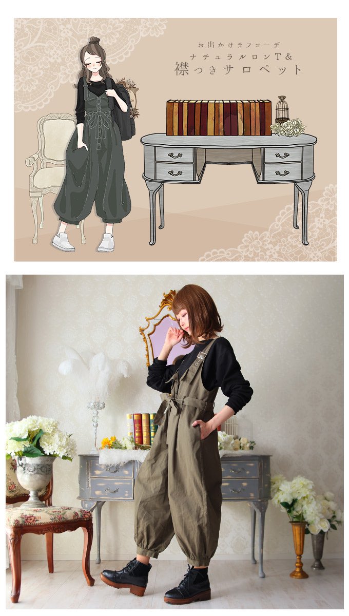 Favoriteオリジナル✨ デコルテ魅せるナチュラルロングTシャツ&襟つきデザインサロペットコーデセット🌈
