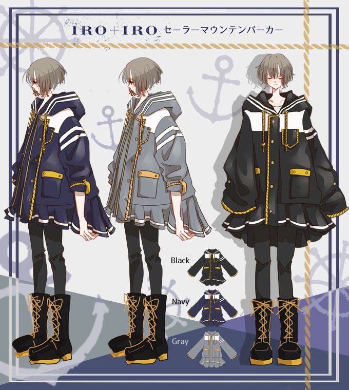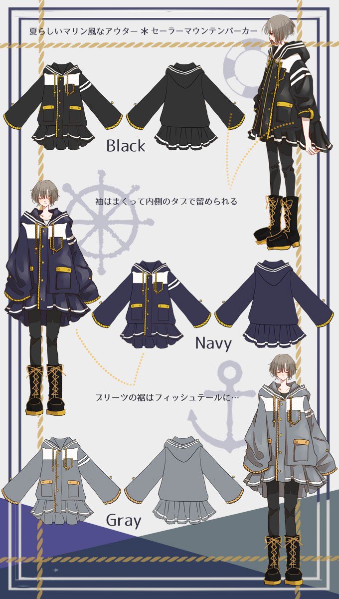 IRO+IRO🖤💙 フィッシュテールプリーツのセーラー風マウンテンパーカー⚓️🌊🐬⛴