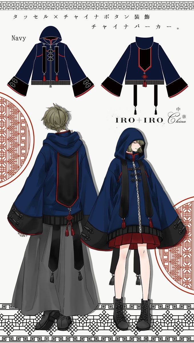 IRO+IRO🖤🤍タッセル×お札装飾。BIGシルエットチャイナパーカー🇨🇳男女兼用design🚹🚺