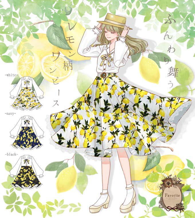 Favoriteオリジナル✨レモン柄スカートのドッキングワンピース👗2021年ver🍋🍋🍋上部をブラウスにして昨年のdesignより着やすくなりました✨
