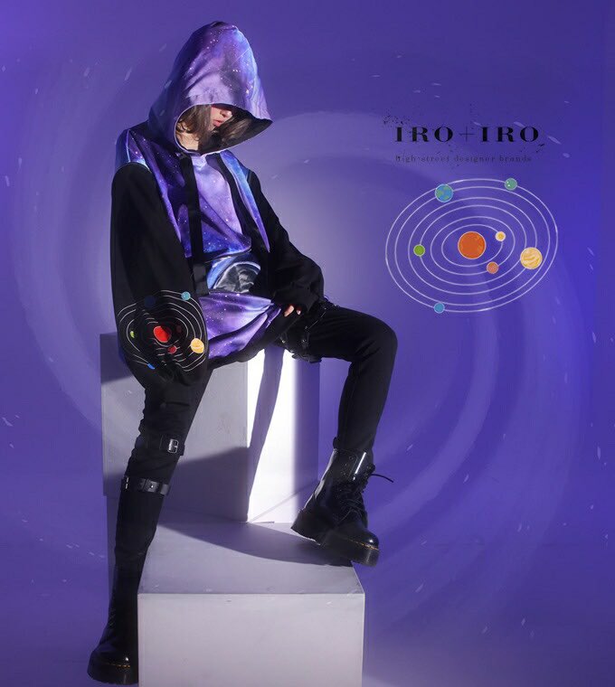 IRO+IRO🖤🤍広がる宇宙とブラックホール銀河系オフショルパーカー🪐🌌💫