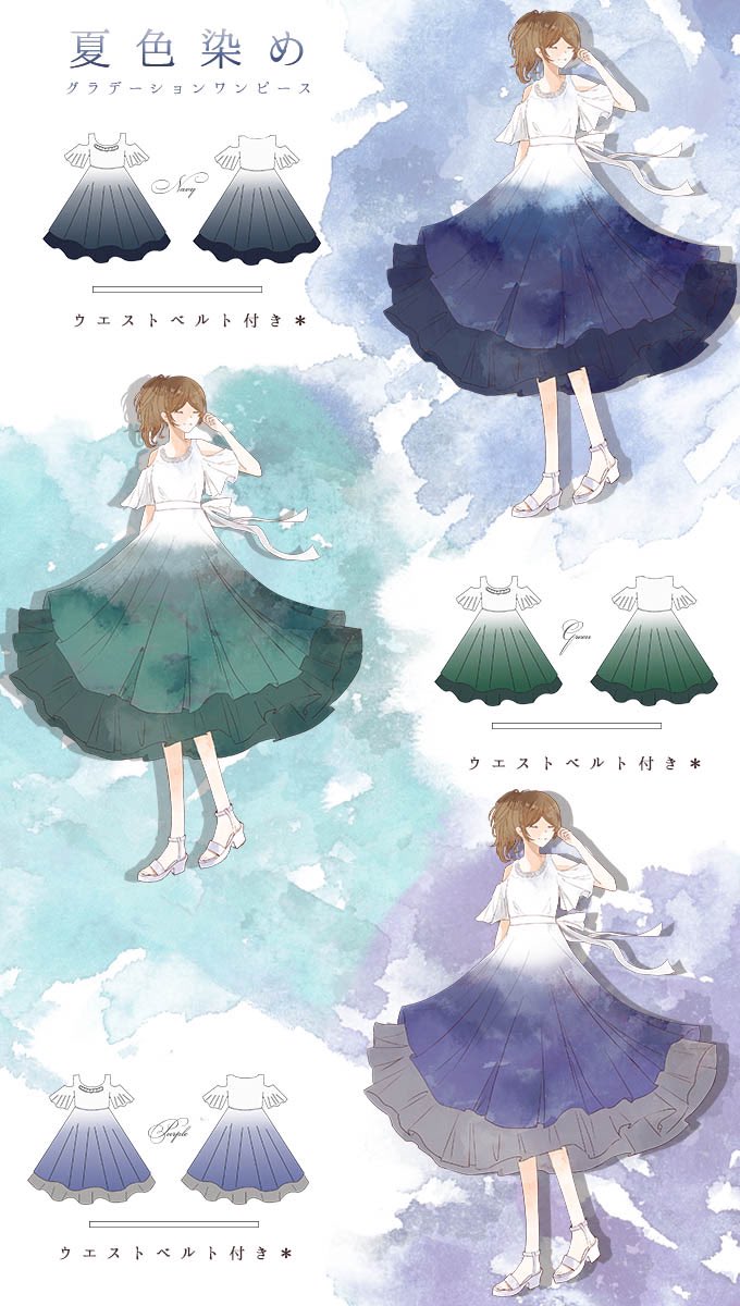 Favoriteオリジナル✨夏色染めグラデーションワンピース👗🌊🌲🟦
