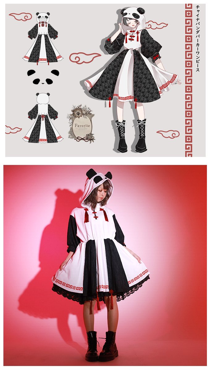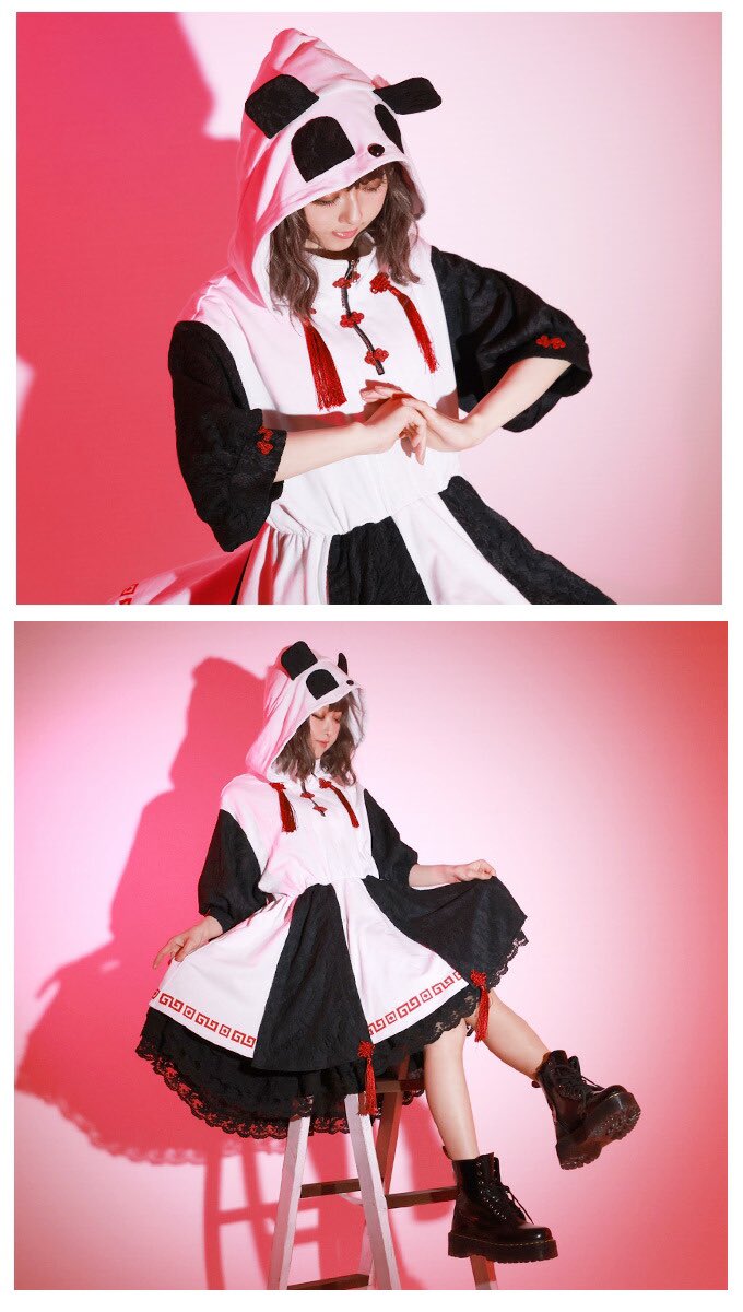 IRO+IRO🖤🤍パンダフードのレースチャイナパーカーワンピース🐼🇨🇳🐼🇨🇳