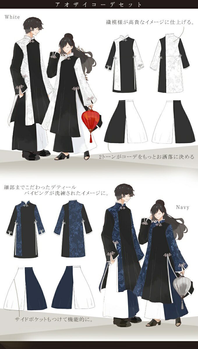 IRO+IRO🖤🤍織りが高貴に魅せる。男女兼用アオザイセット🇨🇳