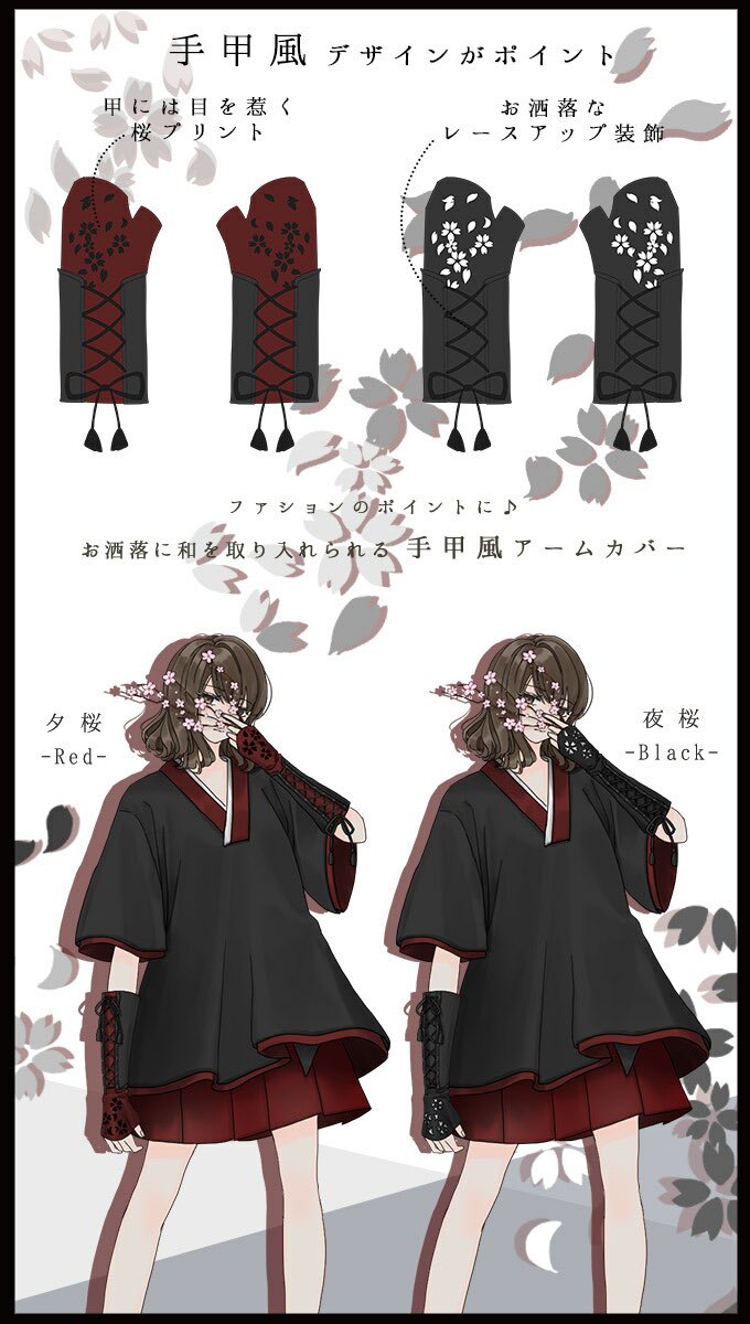 IRO+IRO🖤🤍コーデのポイントに* 桜プリントの手甲風アームカバー🌸🌸
