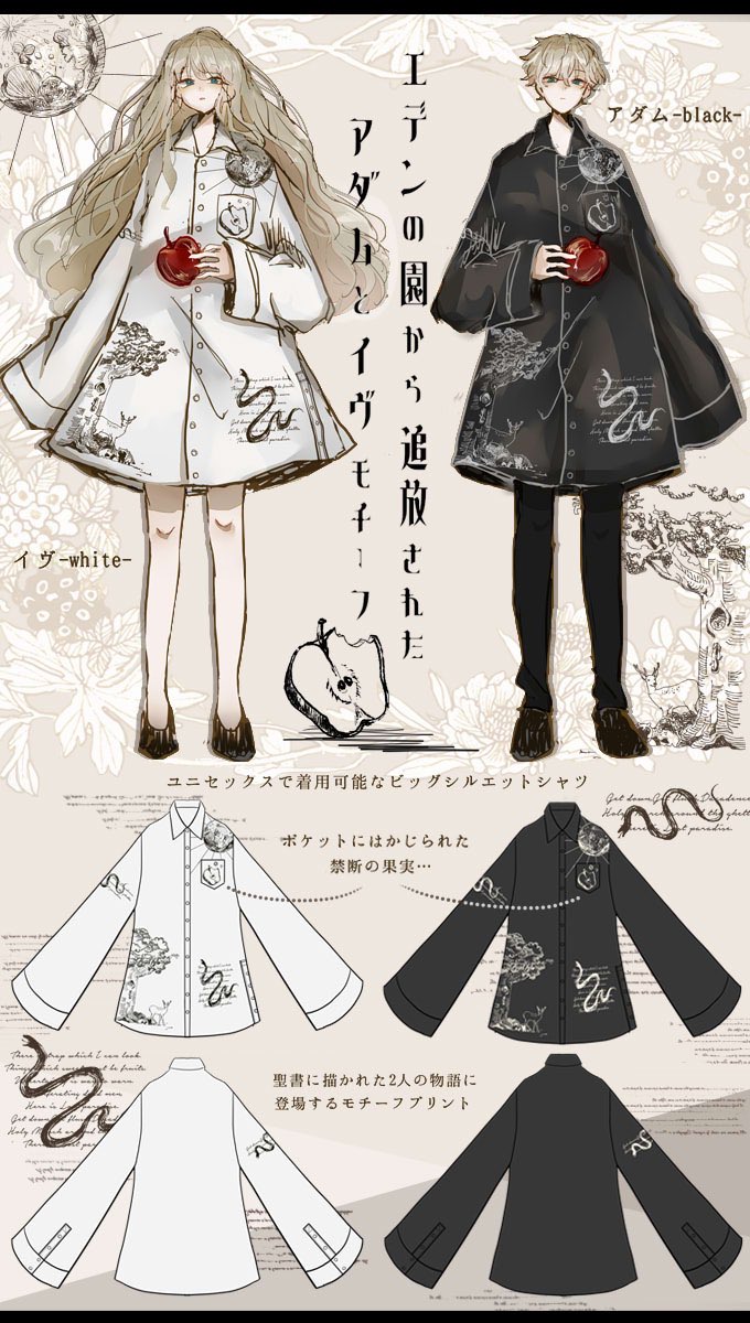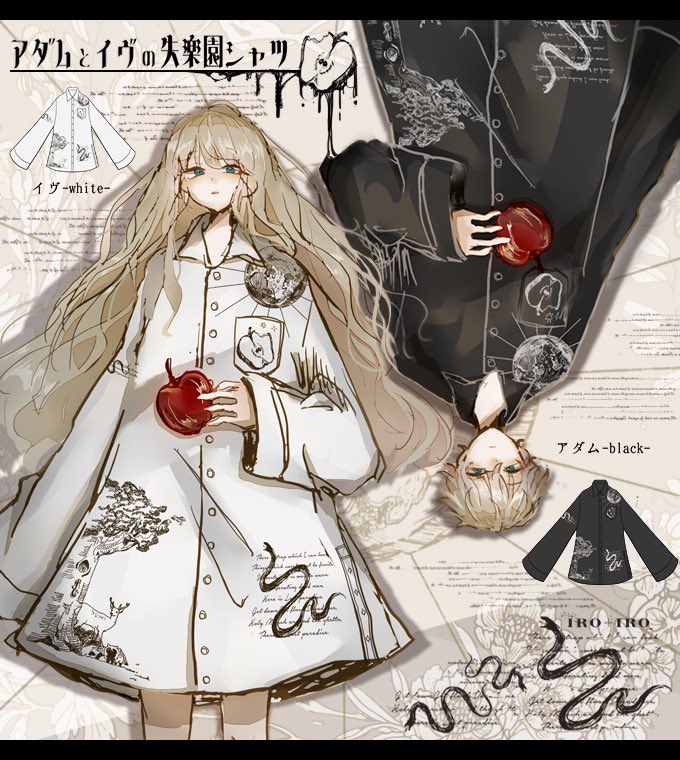 IRO+IRO🖤🤍アダムとイヴの失楽園シャツ🐍🍎🪐男女兼用Design🚹🚺
