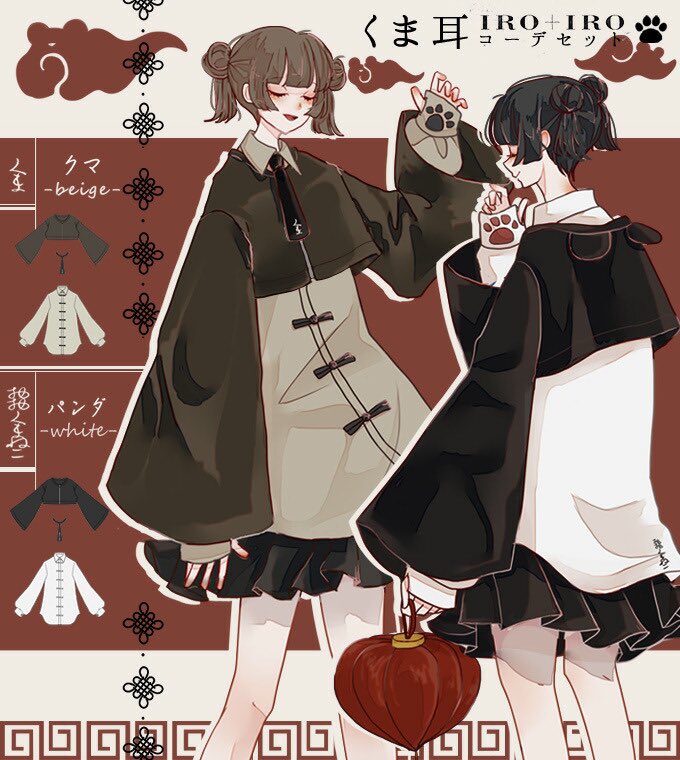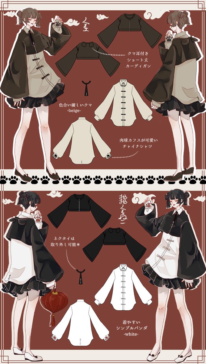 IRO+IRO🖤🤍くま耳チャイナコーデセット♬カーデ&シャツ&ネクタイ🇨🇳🐾🇨🇳🐾パンダ&クマ🐻🐼