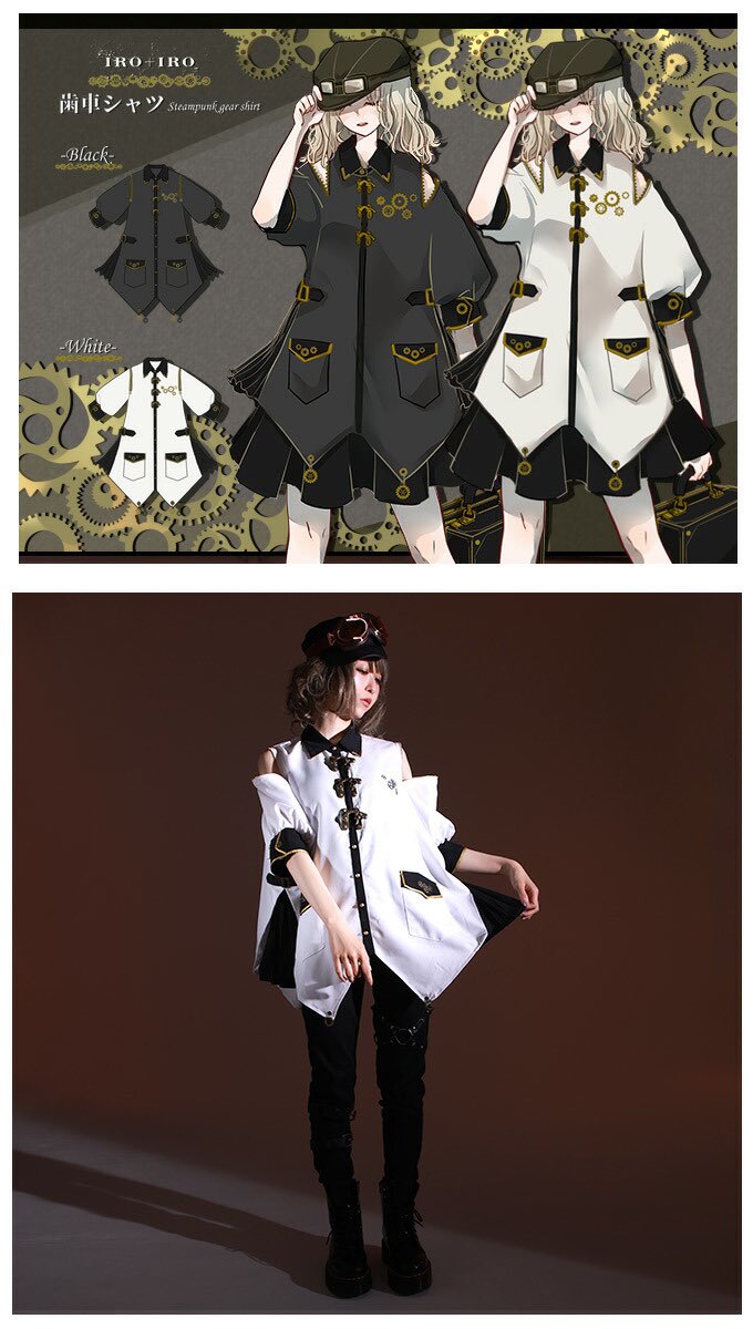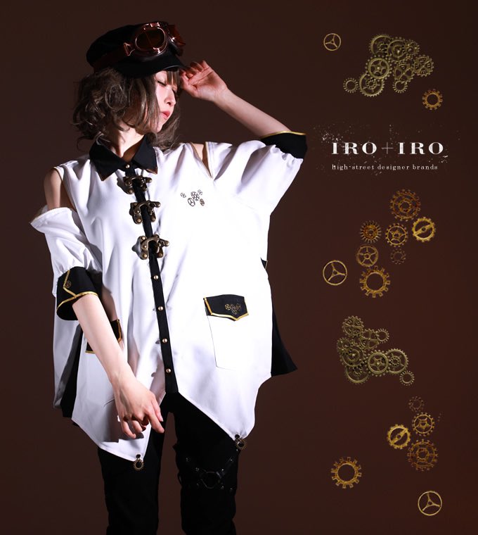 IRO+IRO🖤🤍アコーディオンプリーツのスチパン歯車シャツ⚙⚙⚙男女兼用Design🚹