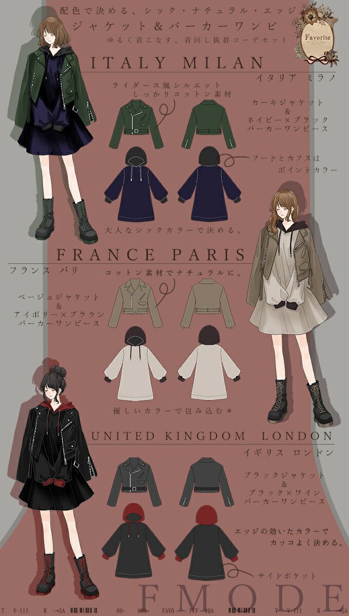 ジャケット×パーカーワンピースの配色コーデ2点セット【イタリア🇮🇹フランス🇫🇷イギリス🇬🇧】