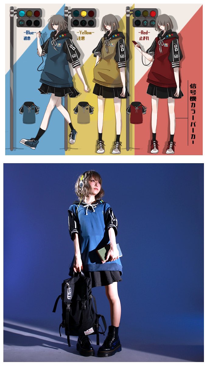 IRO+IRO🖤🤍信号機カラーのベストドッキングパーカー🚥🚥🚥青信号男女兼用Design🚹