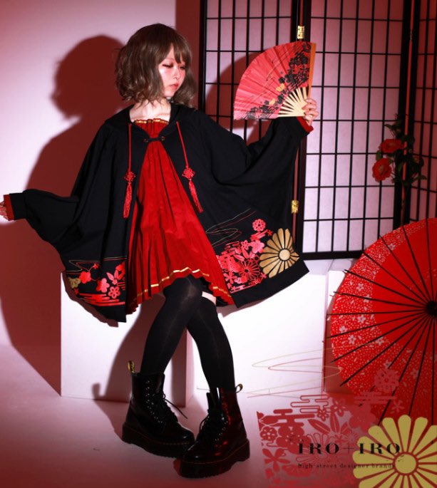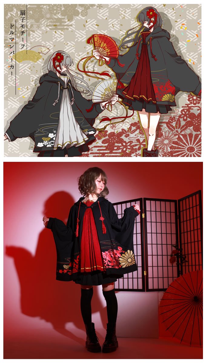 IRO+IRO🖤❤️ 扇子アコーディオンプリーツのドルマン和パーカー👘🇯🇵男女兼用Design🚹