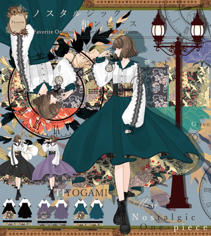 Favoriteオリジナル✨ 千代紙プリントちらり。和洋折衷、帯付きフィッシュテールのノスタルジック和ンピース👘👗