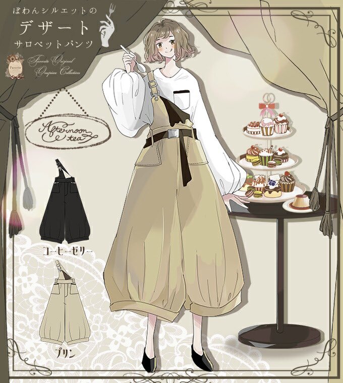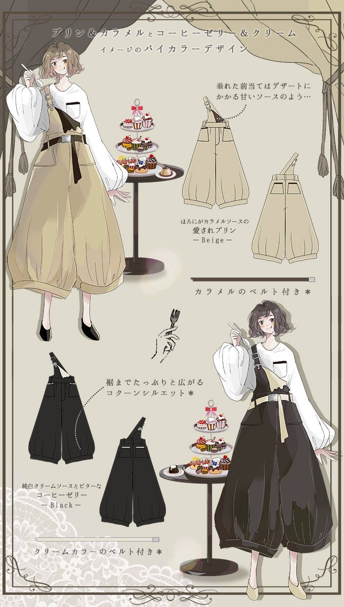 Favoriteオリジナル✨ プリン&コーヒーゼリーのスイーツぽわんサロペットパンツ☕️🍮☕️🍮☕️🍮☕️🍮✨