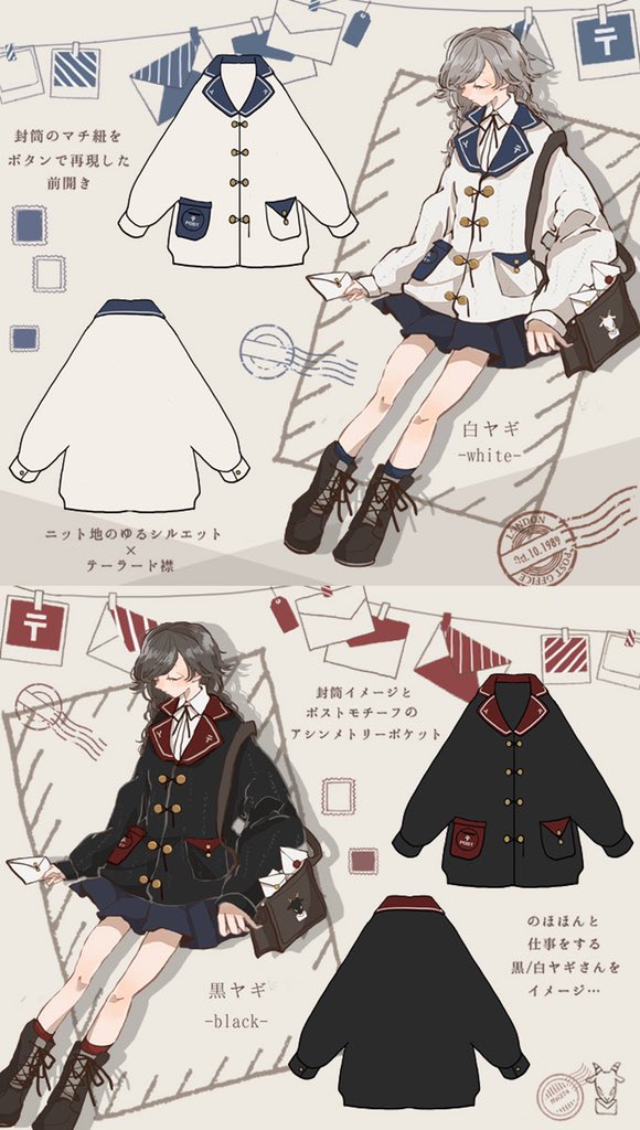 Favoriteオリジナル✨黒ヤギさんと白ヤギさんの郵便屋ニットジャケット🐐🏣📮💌
