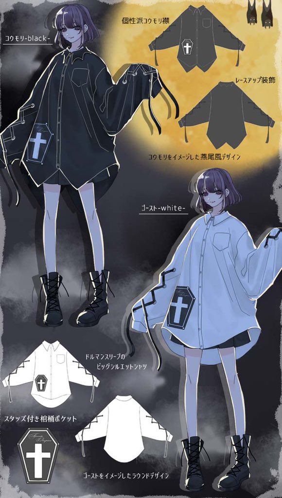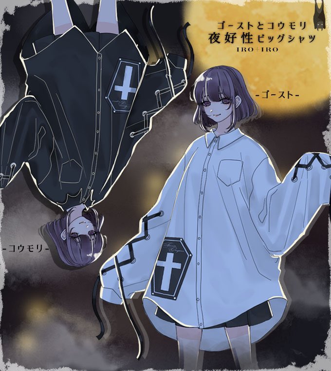 IRO+IRO🖤🤍ゴーストとコウモリの夜好性BIGシャツ👻🦇👻🦇男女兼用Design🚹🚺
