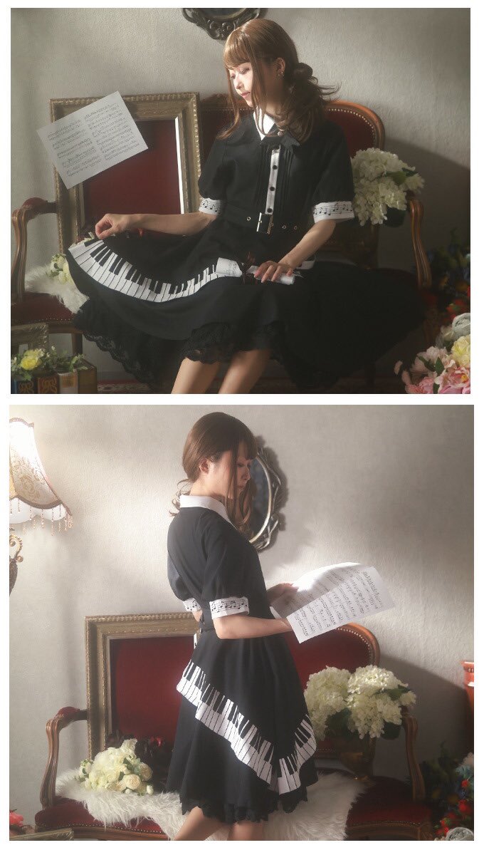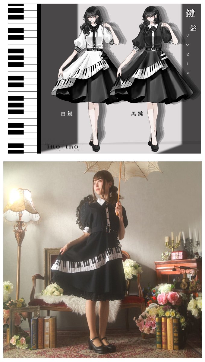 Favoriteオリジナル✨ モノクロ世界で奏でる鍵盤フレアワンピース🎹👗♬♪♩♫🎹