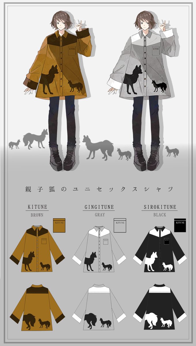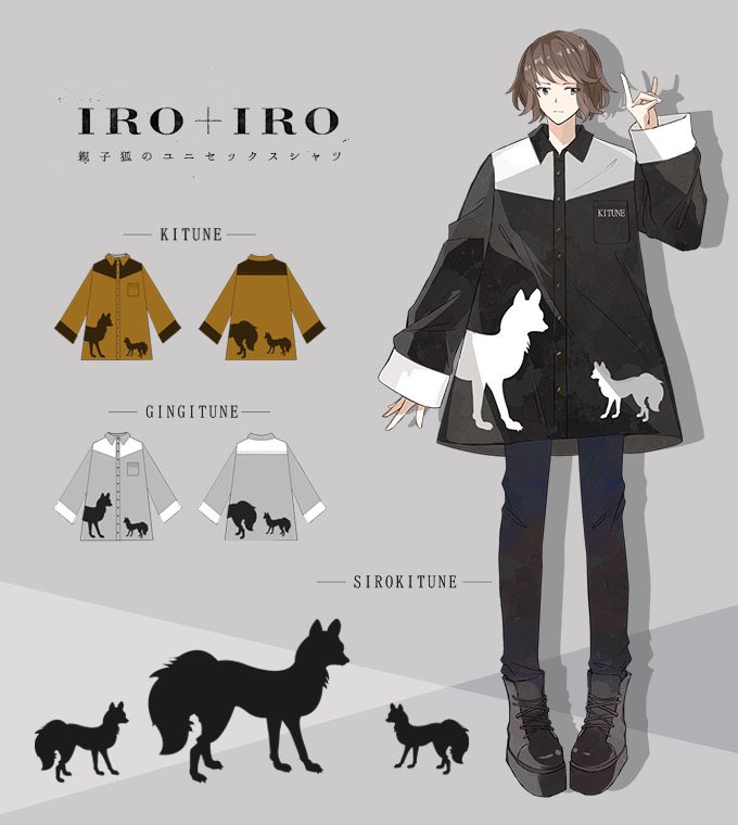 IRO+IRO🖤🤍親子狐が見つめ合うBIGシルエットシャツ🦊🦊男女兼用design🚹🚺
