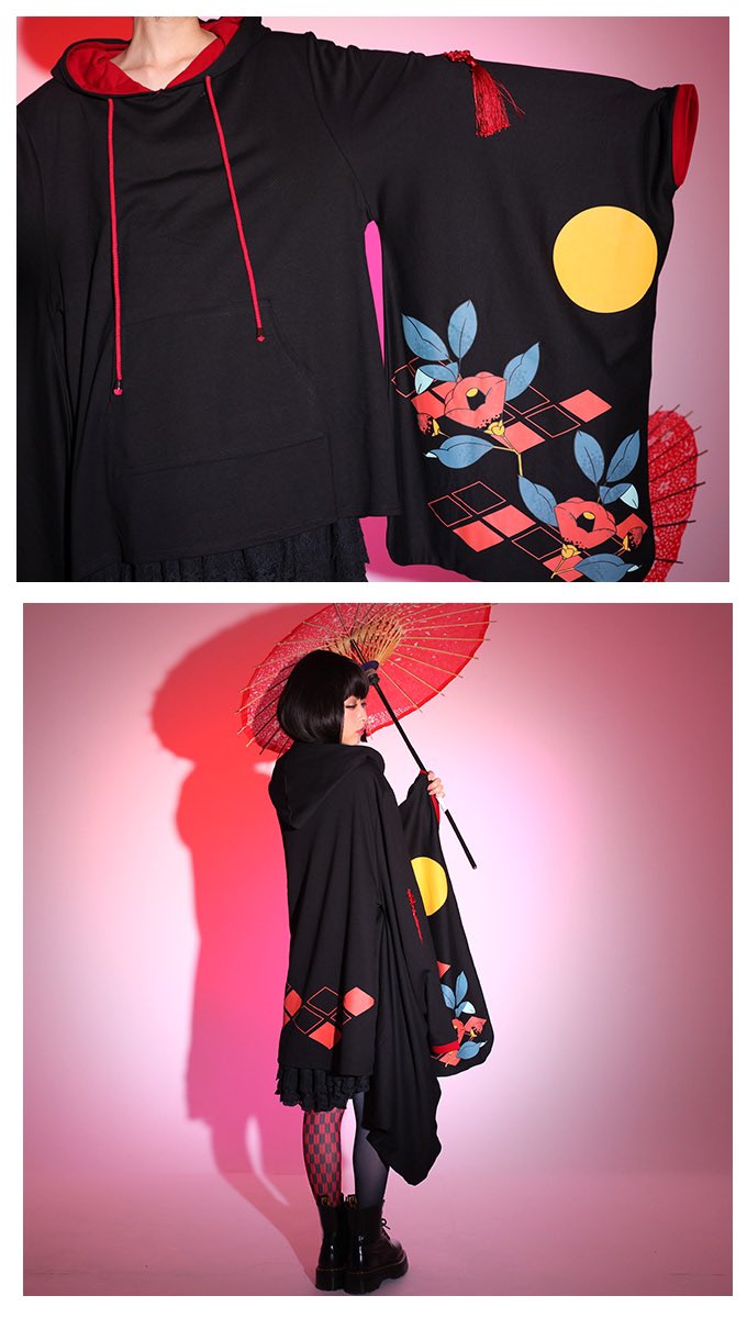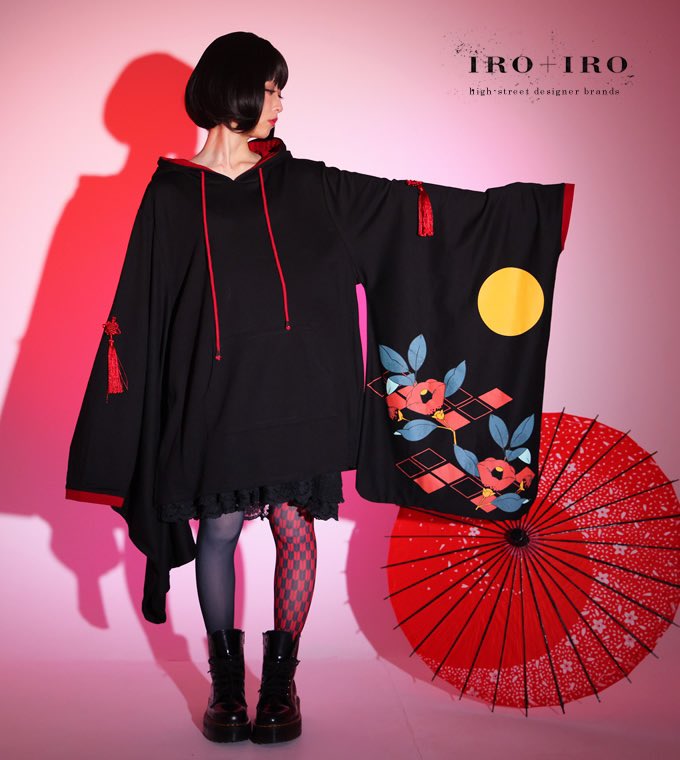 IRO+IRO🖤❤️椿プリントの和袖パーカー🌕🌙👘