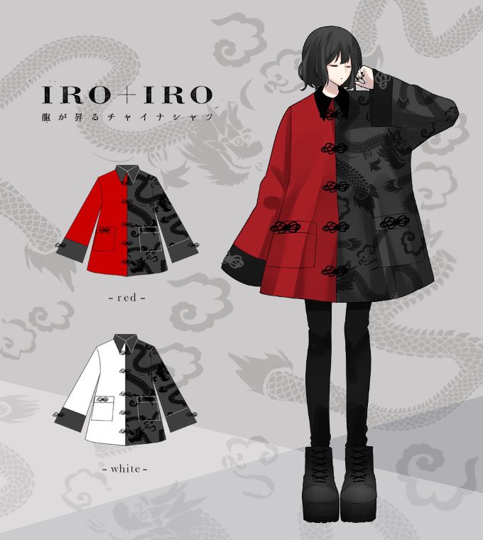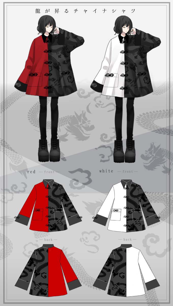 IRO+IRO🖤❤️龍柄のBIGシルエットチャイナシャツ🐉🐲🇨🇳