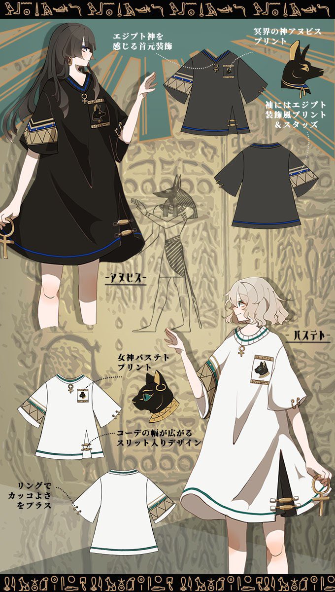 IRO+IRO🖤🤍アヌビス&バステト~カジュアルに着る*エジプト神話ビッグTシャツ~ 🇪🇬🏜☀️🇪🇬🏜☀️男女兼用BIGシルエット🚹🚺
