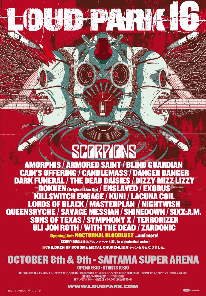 【LOUD PARK 16、CHILDREN OF BODOM、METAL CHURCH 出演キャンセルのお知らせ】