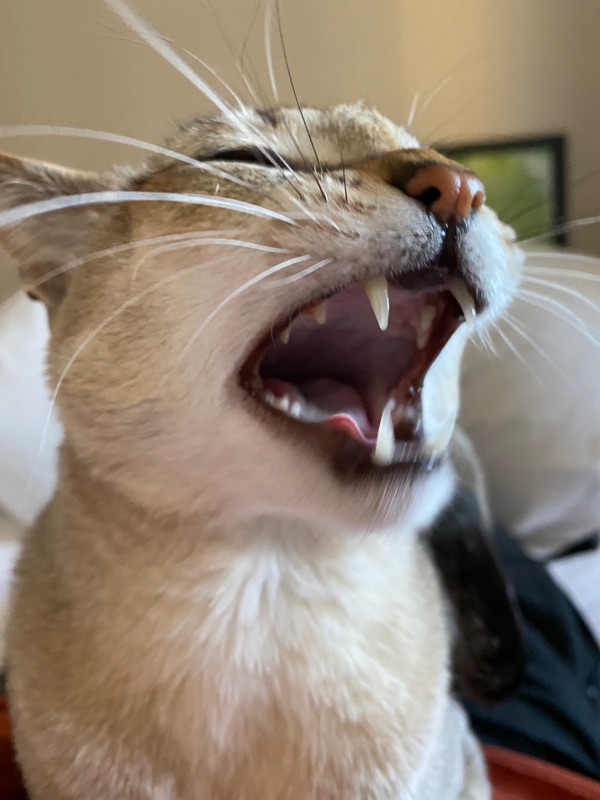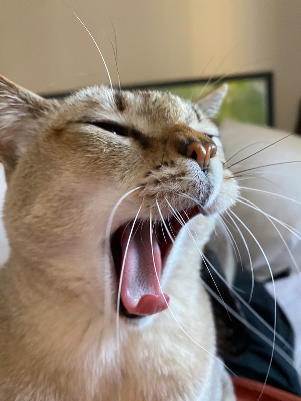 眉間と鼻を撫でられるのが好きなようで、口が半開きになります。