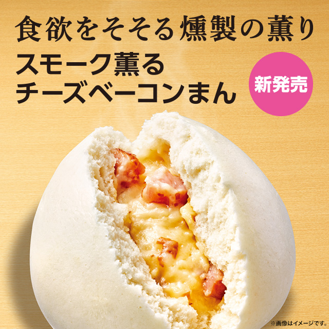 サクラチップでスモークしたチーズが入った「スモーク薫るチーズベーコンまん」♪燻製の香りが楽しめるので、おつまみにもぴったりです(^^) #ローソン