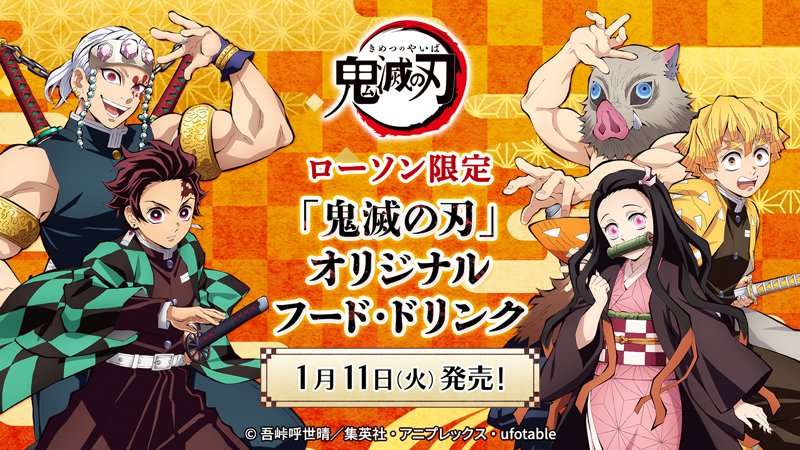 【予告】 1/11~「鬼滅の刃」オリジナルフード・ドリンク発売♪オリジナル味のからあげクン、おにぎり、タンブラー付ストロベリーティーが登場します(^^) #ローソン #鬼滅の刃