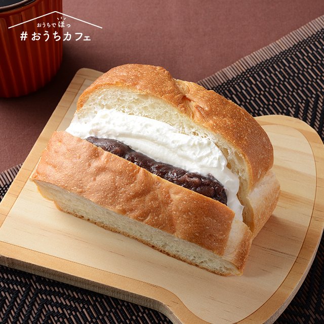 あんことホイップの組み合わせ「あんホイップサンド」です♪フランスパンを使っていますが、柔らかくておいしいです。ベーカリーコーナーにあります(^^) #ローソン