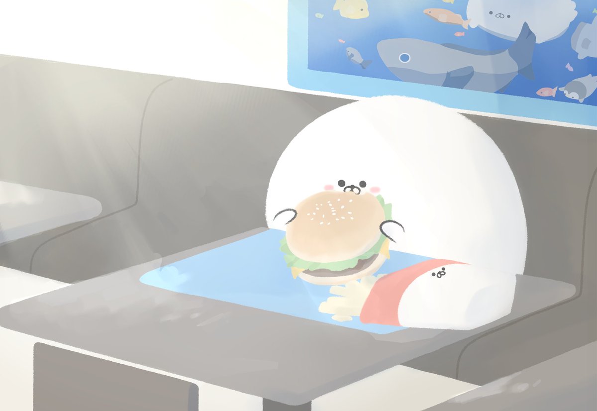 おはようございます🍔 魚だけじゃなくパンも大好き💕 「朝マックを食べるアザラシ」