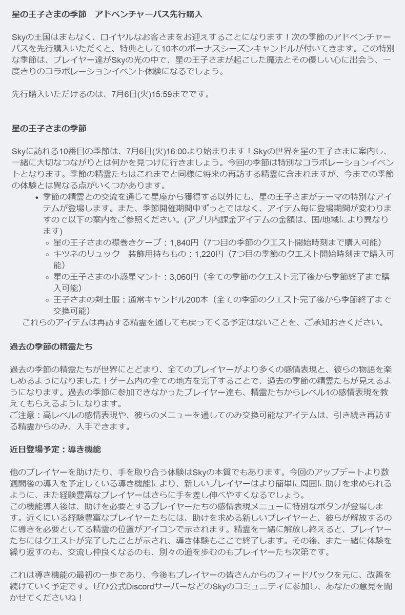 Sky3周年イベントの予告が公開されました🎉