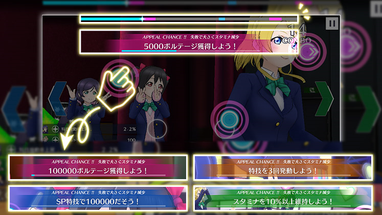 ライブ中の状況をより分かりやすく!アピールチャンスの内容によってバーの色が変わったり、メンバーのステータスがアイコンで表示されたりするようになりました💖