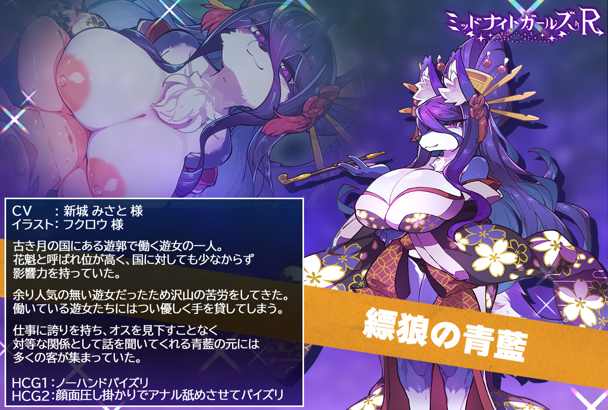 【キャラクターのご紹介♪】 ▼SSR 縹狼の青藍 「ああ、出しなんし♥ さあ、たっぷりと、わちきめがけて♥ どくどく、どびゅどびゅと吐き出しなんし……♥」 イラスト:フクロウ様(